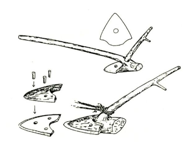 踏犁:古代從耒耜衍化而來的翻土農(nóng)具。其柄上有橫把,下有踏腳,下端裝有金屬犁鏵,使用時(shí)用腳將犁鏵踏入土中,向后扳壓犁柄,將土翻上來,因用足踏,不需畜力牽引,故稱踏犁。為解決耕牛不足的困難,北宋政府曾于淳化五年(994)和景德二年(1005)分別在黃淮地區(qū)和河北地區(qū)兩次推廣踏犁。