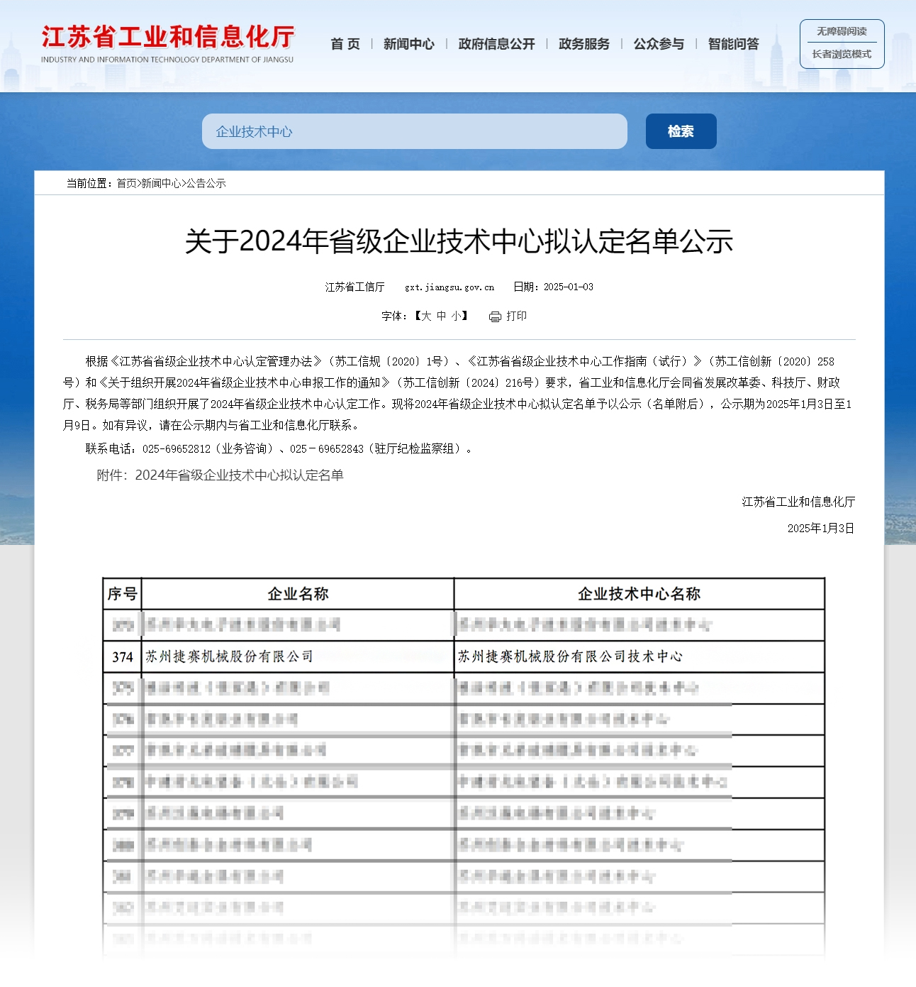 新年伊始,江蘇省工業(yè)和信息化廳對2024年省級企業(yè)技術中心擬認定名單進行公示。蘇州捷賽憑借在技術創(chuàng)新與產(chǎn)品研發(fā)方面的卓越表現(xiàn)成功通過江蘇省企業(yè)技術中心認定,斬獲省級殊榮!