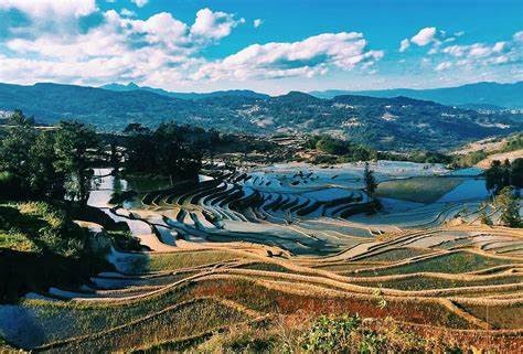 紅河哈尼梯田,位于云南省紅河州的元陽(yáng)、紅河、綠春、金平縣境內(nèi),開墾歷史可追溯到隋唐森林、村寨、梯田、水系,是哈尼梯田“四素同構(gòu)”的農(nóng)耕體系。體現(xiàn)了當(dāng)?shù)厥谰用褡逶?/span>人居環(huán)境選擇、生態(tài)環(huán)境保護(hù)、社會(huì)結(jié)構(gòu)建構(gòu)、水資源支配利用、生產(chǎn)方式管理等方面的獨(dú)創(chuàng)經(jīng)驗(yàn)。紅河哈尼梯田蘊(yùn)藏著豐富的生態(tài)智慧,在中國(guó)生態(tài)文明建設(shè)的進(jìn)程中,成為生物多樣性與文化多樣性協(xié)同、人與自然和諧共生、共建生命共同體的典范。